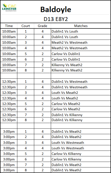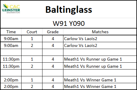 Important Late Changes – Grade 3 Moved to Baldoyle, 10am start and top two teams from each group advance. Baltinglass venue no longer in play.