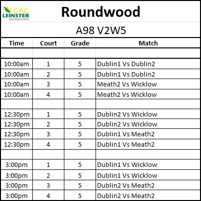 Here are the locations and times for Grades 3 & 5. Please ensure that you note your correct team number for your grade and Eircodes for your hall. Get there 30 minutes before the draw. Grade 1 teams will play a 3 way round robin on Finals day, 22 March 2026. Please note that warmups take no longer than 3 minutes, also please note the footware rules for the new floor in Baldoyle.